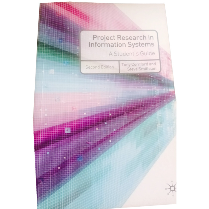 Project Research in Information Systems A Student’s Guide by Tony Cornford and Steve Smithson second edition. The book is specifically designed to provide guidance for final year undergraduate and master’s level students tackling information systems projects.